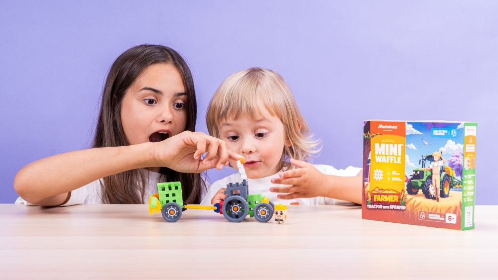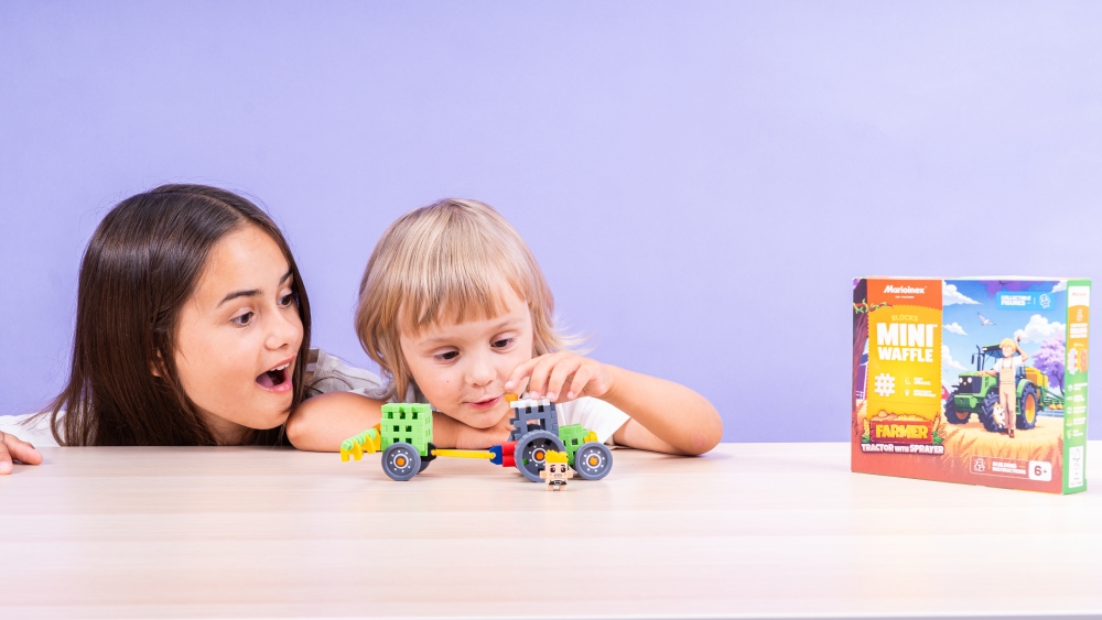 Zestaw Mini Waffle Farmer - Traktor z opryskiwaczem pozwala dzieciom wcielić się w rolę opiekuna farmy, który dba o każdą roślinkę. Dzięki dołączonemu opryskiwaczowi traktor Andy’ego staje się prawdziwym centrum dowodzenia. Czy uda się zdążyć przed deszczem? A może trzeba będzie pomóc sąsiadowi, którego plony są zagrożone? Przygoda czeka za każdym zakrętem.