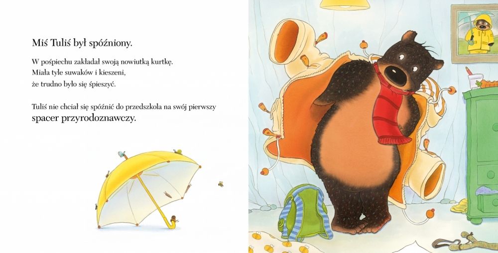 Miś Tuliś to ulubiony przyjaciel milionów dzieci na całym świecie. Rozczula, wzrusza, bawi i rozśmiesza. Łagodnie i z humorem w kipiących akcją, przepięknie ilustrowanych książkach oswaja najmłodszych z nowymi doświadczeniami i przeżyciami o silnym ładunku emocjonalnym. Takimi, które zapamiętuje się na całe życie, jak pierwszy śnieg i magia Gwiazdki, pierwszy dzień w przedszkolu czy pierwszy wyjazd pod namiot. Miś Tuliś dodaje otuchy, gdy dziecko próbuje czegoś nowego, gdy nie może sobie z czymś poradzić i gdy coś przeskrobie. Zawsze bardzo się stara, choć nieraz mu się nie udaje. Zawsze szczery, gotów pomóc innym, jak każde dziecko pragnie miłości i szuka przyjaciół, którzy mu pomogą, pocieszą i zachęcą, by nigdy się nie zniechęcał.