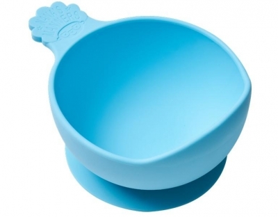 Miska silikonowa z przyssawką i uchwytem niebieska