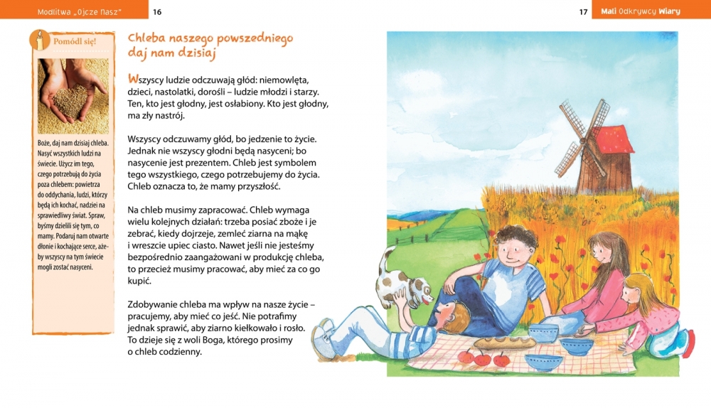 Seria Mali Odkrywcy Wiary w sposób przyjazny i pełen radości wyjaśnia dzieciom ważne zagadnienia dotyczące chrześcijaństwa i zaprasza je, aby lepiej poznały Pana Boga i swoje wnętrze. W tym tomiku dowiemy się wszystkiego, co istotne i ciekawe o modlitwie „Ojcze nasz”. Mali chrześcijanie przekonają się, że są to słowa, które pozostawił nam sam Pan Jezus, abyśmy mogli kierować je każdego dnia do naszego Tatusia w niebie.