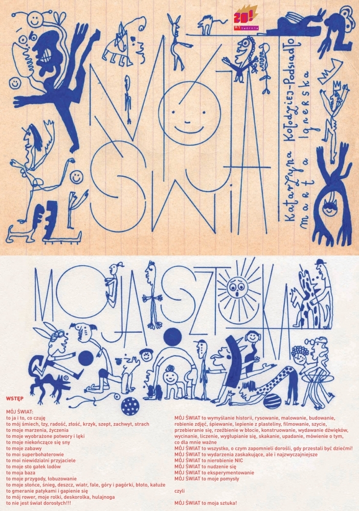 „Mój świat, moja sztuka” to niezwykła książka do tworzenia, rysowania, eksperymentowania, która za-prasza dzieci do świata sztuki. Nie znajdziecie w niej długich opisów dzieł i zamkniętych poleceń. Zamiast tego – ponad 100 reprodukcji prac wybitnych polskich artystek i artystów XX i XXI wieku, które stają się punktem wyjścia do rysowania, wymyślania, malowania i twórczego myślenia. Książka hybryda – połącze-nie albumu ze szkicownikiem.