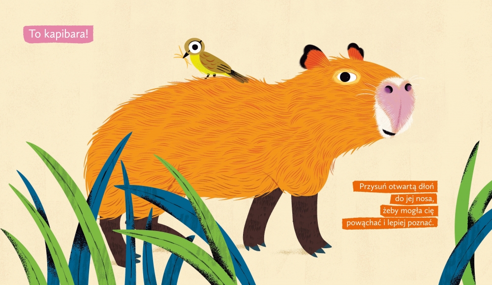 Jej nos wygląda jak serduszko! Podaj jej dłoń, żeby mogła cię powąchać. Pogłaszcz ją, gdy jest smutna. A gdy zrobi się śpiąca, ułóż ją do snu. Niech mocno wtuli się w swoją kapibarową rodzinę!