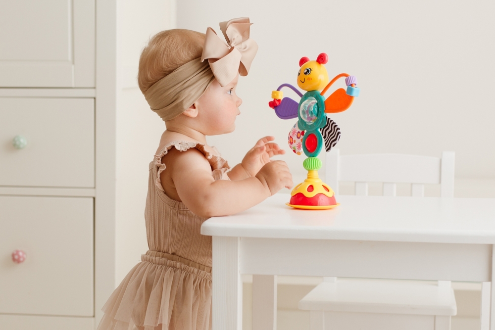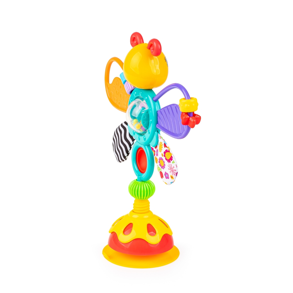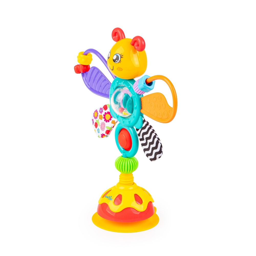 Motylek-towarzysz pierwszych zabaw został wyposażony w mnóstwo sensorycznych niespodzianek! Na najmłodszych czekają szeleszczące skrzydełka, koraliki do przesuwania, obrotowa grzechotka, wzorzyste materiały i zróżnicowane faktury, które stymulować będą malucha do odkrywania świata wszystkimi zmysłami. Motylek posiada praktyczną przyssawkę, z której możesz korzystać na dwa sposoby. Kiedy przyssawka jest sucha, przymocujesz za jej pomocą motylka na krótką chwilę, aby dziecko mogło po pierwszej, statycznej zabawie, wziąć go w rączki i z bliska eksplorować wszystkie kolorowe skarby, które w sobie kryje. Po zwilżeniu przyssawki, bez trudu przymocujesz motylka na dłuższy czas do czystej, gładkiej powierzchni, ułatwiając tym samym maluchowi zabawę, gdy siedzi przy stoliku.