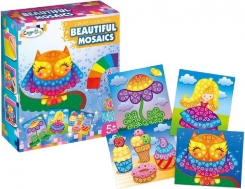 Odkryj świat kolorów i kształtów z zestawem "Beautiful Mosaics" od Color Baby! Ten fantastyczny zestaw to idealna propozycja dla małych artystów w wieku od 5 lat, którzy chcą rozwijać swoje zdolności manualne, precyzję i kreatywność. W pudełku znajdziesz cztery urocze szablony do ozdobienia - bajkową sowę, śliczną księżniczkę, barwny kwiat oraz apetyczne lody i babeczki. Dzięki różnorodnym, samoprzylepnym kształtom, dzieci mogą w łatwy i przyjemny sposób tworzyć swoje własne, unikalne mozaiki. Układanie mozaik to nie tylko świetna zabawa, ale także doskonałe ćwiczenie koncentracji i rozpoznawania kształtów oraz kolorów. Zestaw "Beautiful Mosaics" gwarantuje godziny wciągającej rozrywki, rozwijając jednocześnie wyobraźnię i zmysł artystyczny każdego dziecka. Gotowe dzieła mogą stać się piękną ozdobą pokoju lub wyjątkowym prezentem dla bliskich.