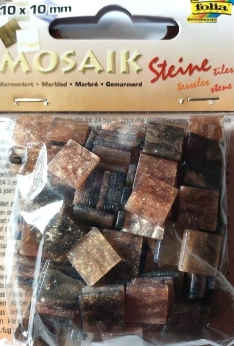Kamyczki marmurkowe 10x10 mm . Kolor : brązowy. Opakowanie około 190 sztuk. Wykonane z kolorowej żywicy kamyki o powierzchni przypominającej fakturę marmuru.