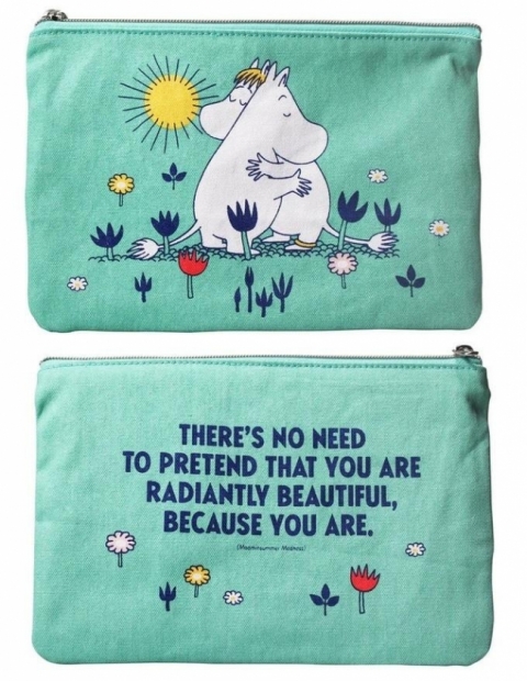 Haftowana saszetka wykonana z bawełny z recyklingu, której motywem przewodnim jest ciepłe objęcie postaci Muminka i Migotki. Kompozycja z romantycznym akcentem - Muminki w uścisku otoczone kwiatowymi detalami, natomiast na odwrocie inspirujący cytat. Zamykana metalowym suwakiem i zaprojektowana z myślą o ekologii, ta saszetka o wymiarach 16,5 24 cm została opracowana przez twórców kultowych Muminków, stając się nie tylko praktycznym akcesorium, ale i artystycznym akcentem dnia codziennego - zarówno do trzymania przyborów, kosmetyków czy drobiazgów.