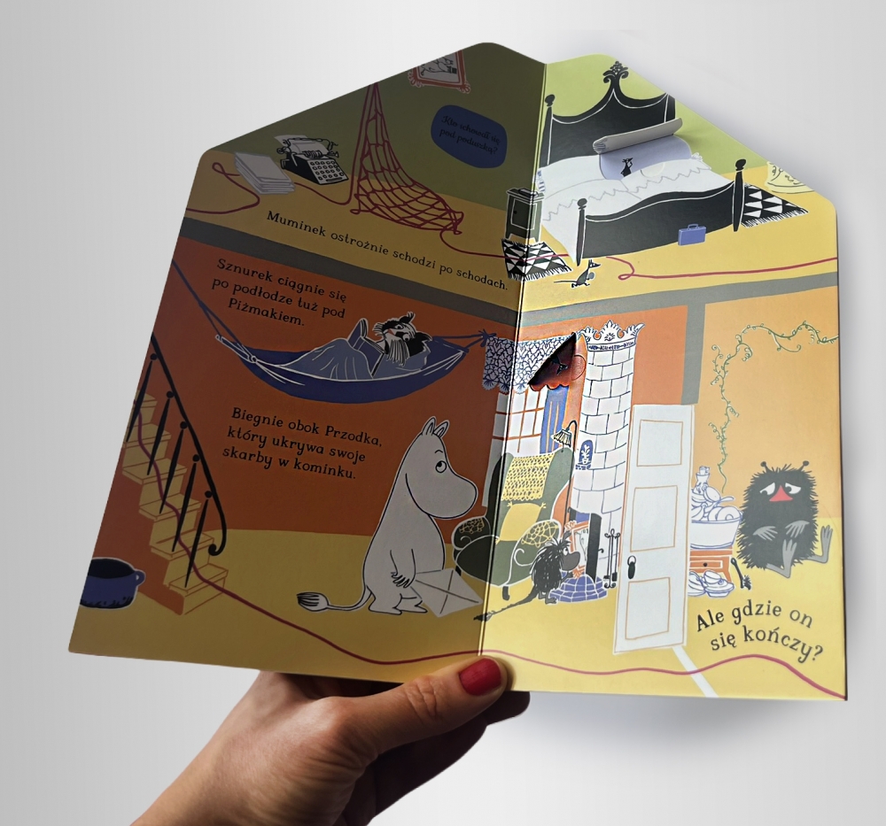 Zwiedzaj kolejne zakamarki i odkrywaj urocze sekrety domu Muminków, którego wnętrze przedstawiono w najdrobniejszych szczegółach. Sprawdź, kto w wolnych chwilach buja się na trapezie i kto właśnie zjeżdża po poręczy. Przekonaj się, co Przodek ukrywa w kominku i kto bał się tak bardzo, że wszedł pod poduszkę. Ta niezwykła, pięknie wydana i dopracowana w najdrobniejszych elementach książka pozwoli zajrzeć do wnętrza niezwykłego domu Muminków i poznać codzienne życie jego licznych mieszkańców. Są tu zarówno bohaterowie pierwszoplanowi, jak i mnóstwo małych stworzonek, dla których dom pozostaje zawsze otwarty.