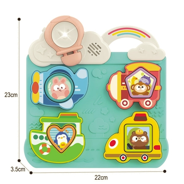 Muzyczny sorter kształtów – pojazdy to edukacyjna zabawka, która łączy naukę z radosną zabawą. Dzięki niej maluch od 18. miesiąca życia uczy się rozpoznawania kształtów i kolorów, ćwiczy koordynację wzrokowo-ruchową oraz rozwija zdolności manualne.