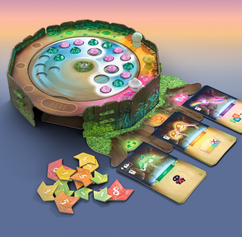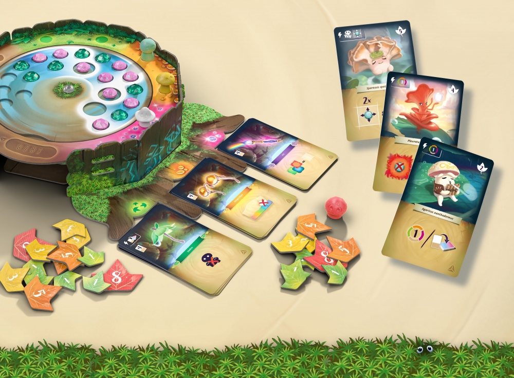 W tym czarującym rozszerzeniu do popularnej gry typu budowanie talii, dodajesz więcej magii do lasu. Cel pozostaje ten sam - zbierać liście i zaprzyjaźniać się z grzybami, które pomogą ci oczyścić planszę z kropli rosy, a teraz także z kropli Prisma. Krople Prisma przyniosą ci przychylność, a przychylność pomoże ci zdobyć cenne prezenty. Magiczne karty prezentów, zaprojektowane tak, aby pomóc dobrać więcej pomocnych kart grzybów, z pewnością zachwycą.