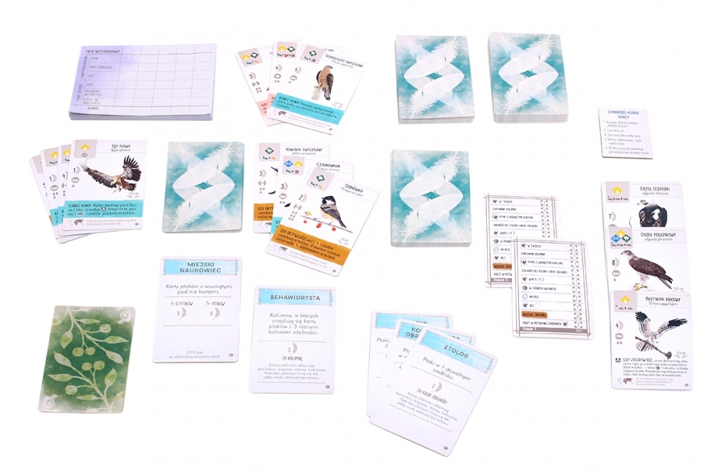 Dodatek Ptaki Europy zawiera także dodatkową tackę, aby utrzymać porządek wśród rosnącej kolekcji ptaków (z gry podstawowej, obecnego dodatku i przyszłych rozszerzeń), 15 fioletowych jaj, dodatkowe żetony pożywienia, nowe żetony celów, karty bonusowe i nowy kolorowy notes punktacji zarówno dla gry jednoosobowej, jak i wariantów dla wielu graczy.