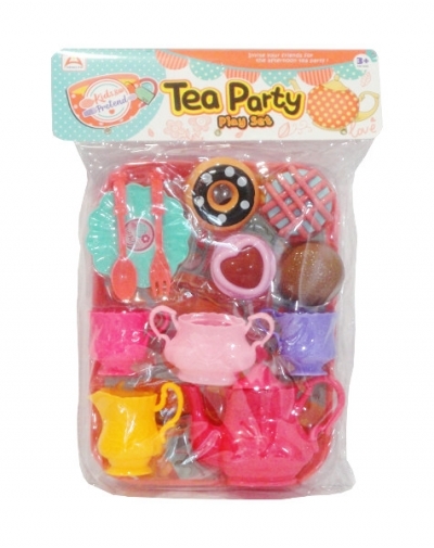 Zestaw naczyń dla dzieci. W zestawie znajduje się czajnik, 2 kubki, 2 talerzyki, mlecznik, cukiernica, taca i ciasteczka. Produkt uprzyjemni dzieciom zabawę w dom. Produkt dla dzieci od 3 lat. Podane wymiary są wymiarami opakowania. Zabawka zapakowana w przezroczysty worek.