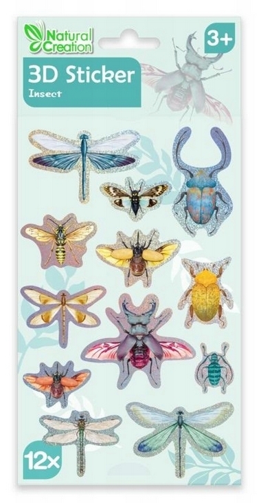 Dzieciom spodoba się przyklejanie ich na wielu różnych powierzchniach (kubkach, lustrach, książkach lub oknach). W zestawie 12 sztuk naklejek insektów.