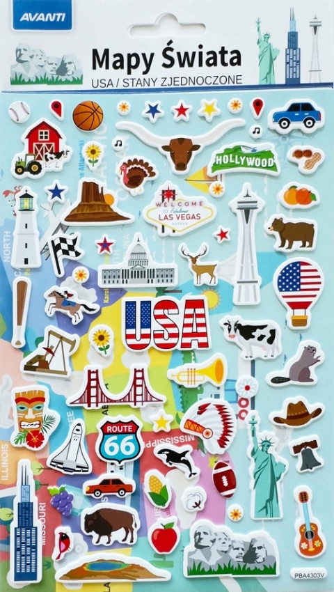 Naklejki edukacyjne Mapy świata - Stany Zjednoczone