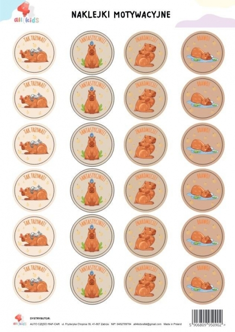 Nasze naklejki motywacyjne to doskonały sposób na nagradzanie dzieci za ich osiągnięcia, postępy i dobre zachowanie! Kolorowe, wesołe wzory sprawią, że każde dziecko poczuje się docenione i zmotywowane do dalszej pracy.