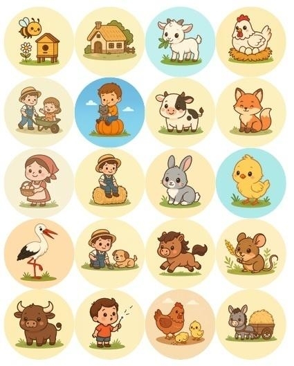 Samoprzylepne naklejki z motywem zwierzątek z farmy Wymiary każdej naklejki 2,5 cm x 2,5cm 200 sztuk w opakowaniu 40 powtarzających się motywów Do naklejenia na czyste, gładkie i suche powierzchnie( papier, szkło, laptopy, walizki, deskorolki, lodówki, meble, gitary, samochody, motocykle, rowery, kubki, tworzywa sztuczne itp.) Naklejki to doskonałe narzędzie dla każdego nauczyciela czy rodzica. Służą zarówno do motywowania dzieci do dobrego zachowania jak również do zdobienia zeszytów, kartek, zaproszeń i pamiętników.