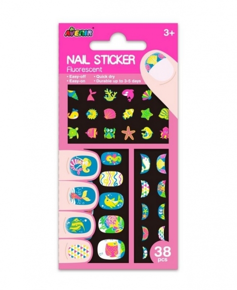 Zestaw 38 mini naklejek na paznokci ucieszy każdą małą fankę mody. Fluorescencyjne naklejki z motywem rybek i podwodnego świata są łatwe w aplikacji oraz ściągnięciu, utrzymują się na paznokciach dziewczynki przed 3-5 dni i są w pełni bezpieczne dla skóry dziecka.