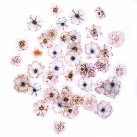 Naklejki z wysokiej jakości transparentnej folii PET z motywami kwiatowymi w delikatnych pastelowych odcieniach beży i jasnego różu to absolutny must have każdego twórcy