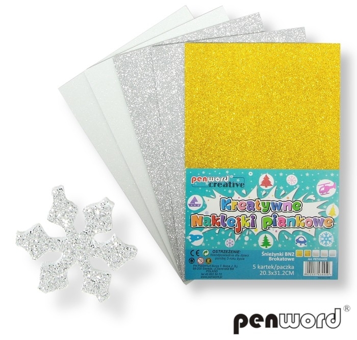 Naklejki piankowe śnieżynki 20,3x31,20cm 5szt