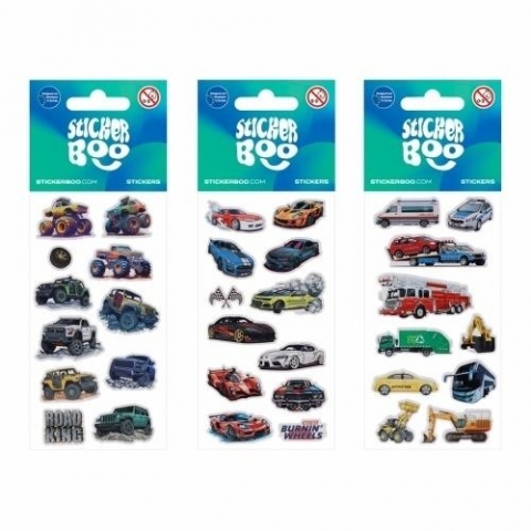 Naklejki STICKERBOO z grafiką z Autkami z pewnością przypadną do gustu dzieciakom, idealne do zdobienia rysunków, wszelkiego rodzaju prac plastycznych oraz kolekcjonowania. Dostępne w 3 odsłonach graficznych.Wysyłka losowo. Wymiary/waga: wymiary produktu (wys. x szer.) [cm]: 12x6, waga produktu w opakowaniu [kg]: 0,005 kg. Pakowane na blistrze w folię.
