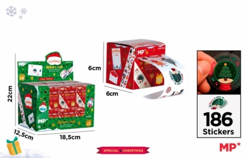 Rolka jest zapakowana w kolorowe pudełko z otworem z przodu ułatwiającym wyjmowanie naklejek.