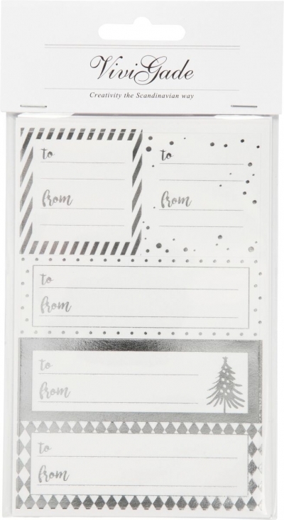 Naklejki świąteczne na prezenty srebrno białe różne formaty 4 ark edycja limitowana