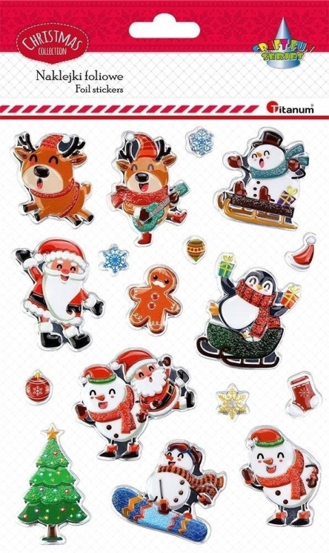 Naklejki wypukłe Mikołaj, bałwanki, Ciastek, pingwin, choinka, renifery 17szt.