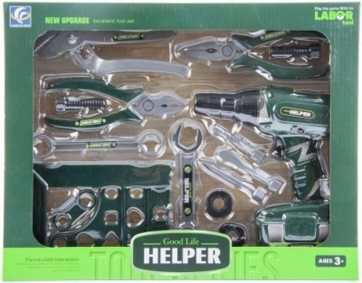 Interakcja rodzic-dziecko pobaw się i spędź czas ze swoim dzieckiem! Zawartość zestawu: wkrętarkowkrętarka,kombinerki, klucz francuski, szczypce, śrubokręt, kątownik, śrubki, wiertła, nakładki.