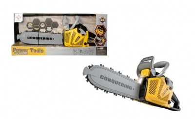 Zabawka piła łańcuchowa z efektami świetlnymi i dźwiękowymi. Realistyczny wygląd umożliwia zabawę w majsterkowanie. Zabawka działa na baterie AAA. Baterie nie są załączone do zabawki. Zabawka przeznaczona dla dzieci od lat 3. Zapakowany w kartonowe pudełko. Podane wymiary są wymiarami opakowania.