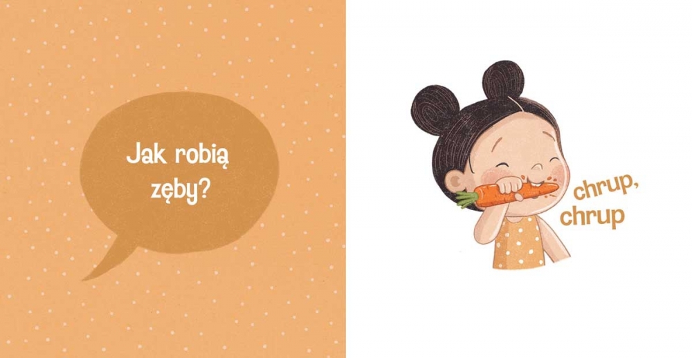 Dzięki prostym pytaniom i dźwiękonaśladowczym odpowiedziom dziecko uczy się rozpoznawać dźwięki związane z codziennymi czynnościami i reakcjami ciała.