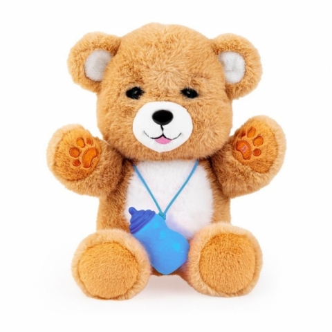 Pogłaszcz go po główce lub brzuszku i nakarm dołączoną do zestawu buteleczką, a z radością odwdzięczy się „misiowymi” odgłosami, zamykając przy tym i otwierając oczka. Zwierzak posiada dwie aktywne łapki. Naciśnięcie pierwszej uruchamia funkcję nagrywania i odtwarzania nagranego dźwięku, a naciśnięcie drugiej uruchamia urocze melodie.