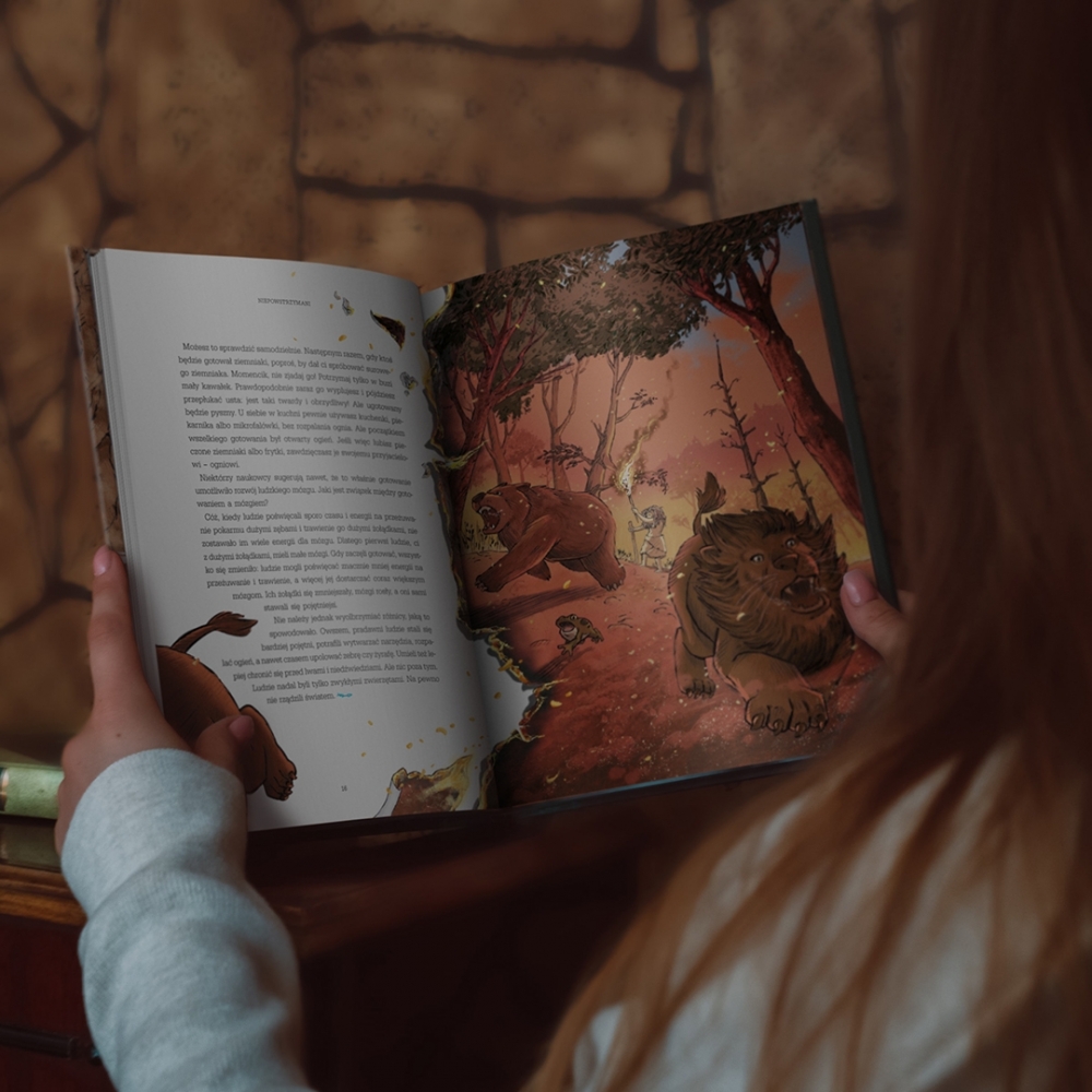 Jak dzięki ogniowi udało nam się zmniejszyć żołądki? Co gra w piłkę nożną mówi o byciu człowiekiem? I dlaczego spośród wszystkich bajek najwięcej osób uwierzyło w tę o pieniądzach? Dowiecie się tego, podążając śladami pradawnych ludzi, którzy wyruszyli tysiące lat temu z Afryki. To historia ludzkości, jakiej wcześniej nie znaliście. Poznacie karły i gigantyczne węże, Wielkiego Ducha Lwa mieszkającego ponad chmurami i ujrzycie… palec sprzed kilkudziesięciu tysięcy lat (!), który ujawnia tajemnice pochodzenia człowieka.