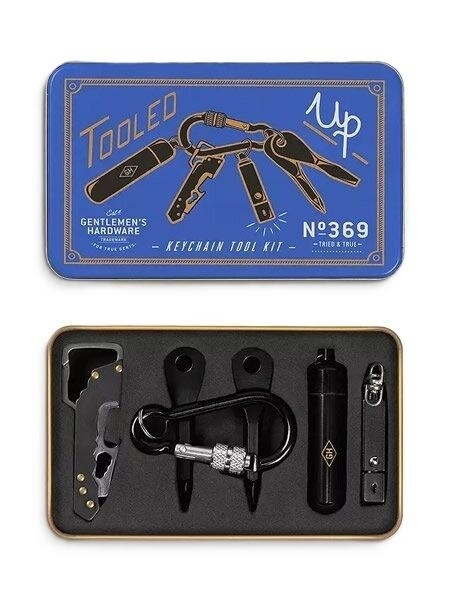 Idealny kieszonkowy zestaw narzędzi bądź zawsze pod ręką dzięki temu zestawowi narzędzi do kluczy od Gentlemen's Hardware. Zawiera siedem narzędzi: latarkę LED, otwieracz do butelek, śrubokręty krzyżakowe i płaskie, schowek na gotówkę oraz klucz imbusowy. Zapakowany w firmową puszkę prezentową.