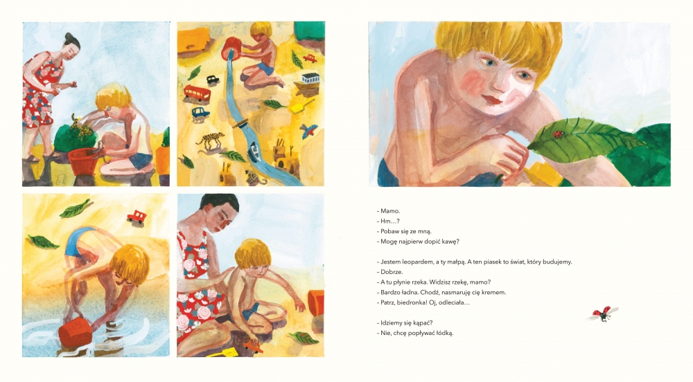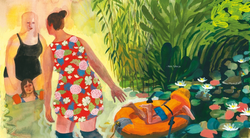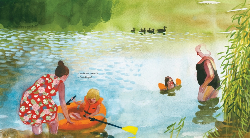 Słoneczne lato, plaża nad rzeką, sielskie popołudnie z mamą. Chłopiec odwiązuje z pomostu ponton i wyrusza nim w cudowną podróż. Podróż krótką, jak popołudniowa drzemka i długą, jak całe życie. Mija lasy, miasta, dżungle i wodospady, spotyka postacie ze snu i jawy, a wszystko, co widzi, odbija się w wodzie i w jego własnych myślach. Wraca odmieniony i z tajemniczym podarunkiem: nasionkiem, które ma smak nadziei i przyszłych przygód. Ziarenkiem odwagi i ciekawości, z których rodzi się samodzielność. Wraca do mamy, która została na brzegu – obecna i spokojna. Bo wie, że czasem, żeby dojrzeć, trzeba na chwilę odpłynąć.