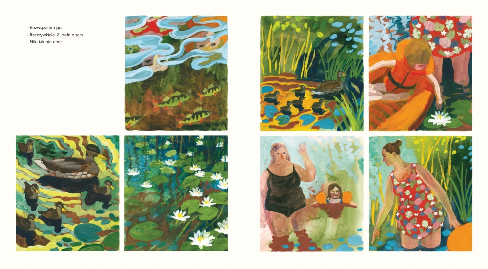 Z werdyktu jury: Liryczna, magiczna, fantastyczna, oniryczna, a zarazem intymna, symboliczna, sentymentalna i uniwersalna – ta książka oczarowała jurorów. Nasycona odniesieniami do największych twórców literatury i sztuki – od Matisse’a po Sendaka, od malarstwa Rousseau po współczesną ilustrację – książka Sary Lundberg łączy mistrzowskie wykorzystanie różnych rejestrów kompozycyjnych z bogatym i zróżnicowanym układem graficznym. Obrazy opisują pełną wyobraźni i poruszającą podróż edukacyjną, która wiedzie przez realistyczne i fantastyczne miejsca oraz krajobrazy, napotykając zarówno niebezpieczeństwa, jak i magicznych pomocników. Dryfując po powierzchni rzeki, kondensując wielką przygodę w krótkim czasie i rozszerzając przestrzeń własnej autonomii poprzez doświadczenie przygody, główny bohater i autorka zapraszają nas, byśmy stali się świadkami magii doskonałej powieści dziecięcej.