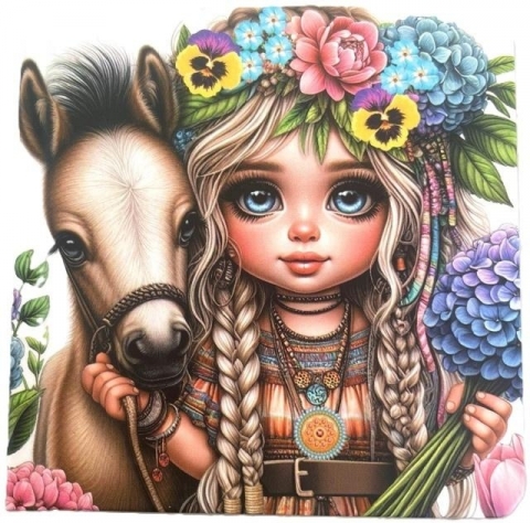 Notatnik ozdobny 100x100 N9807 Dziewczynka z koniem 48 stron gładki TW