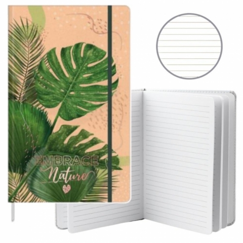 NOTATNIK / ZESZYT W LINIE LIŚCIE MONSTERA 80 KARTEK A5 Stylowy notatnik z motywem liści monstery to elegancki i praktyczny wybór dla osób ceniących naturalny design oraz funkcjonalność. Posiada twardą okładkę w odcieniach beżu i zieleni, ozdobiona dużymi, tropikalnymi liśćmi. Napisy "Embrace Nature" dodają charakteru i inspirują do codziennego notowania myśli, zadań czy planów. Wewnątrz znajduje się 80 kartek w delikatną linię, które idealnie sprawdzą się zarówno jako zeszyt do notatek, dziennik, planer, jak i osobisty organizer. Zeszyt wyposażono w praktyczną gumkę, która zabezpiecza całość przed przypadkowym otwarciem oraz tasiemkę pełniącą funkcję zakładki. Dzięki poręcznemu formatowi A5 świetnie sprawdzi się w pracy, szkole, podróży czy w domu. To doskonały wybór dla osób, które chcą połączyć estetykę z codzienną organizacją. SPECYFIKACJA: Wzór okładki: Liście monstery Rodzaj okładki: Twarda, matowa z nadrukiem Elementy dekoracyjne: Tropikalne liście, napis "Embrace Nature" Rodzaj kartek: W linie Ilość kartek: 80 Kolor kartek: Biały Format: A5 Wymiary: 21 x 15 x 2 cm Zamknięcie: Elastyczna gumka ZAWARTOŚĆ ZESTAWU: Notatnik / zeszyt - 80 kartek