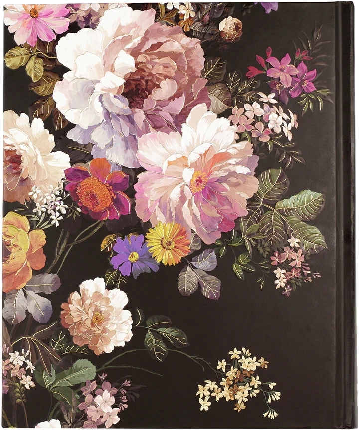 Duży, oryginalny notatnik firmy Peter Pauper Press – Kwiaty o Północy (Midnight Floral). Każdy notes tej marki jest wyjątkowym dziełem sztuki. Bogactwo wzorów i kolorów pozwala wybrać ten idealny. Notes doskonale nadaje się na prezent. Na okładce wzór zaprojektowany przez Atelier Mineeda.