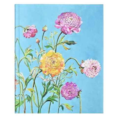Każdy notes marki Peter Pauper Press jest wyjątkowym dziełem sztuki. Bogactwo motywów i kolorów sprawia, że każdy znajdzie wzór idealnie dopasowany do osoby i okazji. Okładka przedstawia kwiaty kwitnące na tle lazurowego nieba. Notatnik posiada tłoczenia i elementy pokryte złotą folią oraz złote brzegi stron.