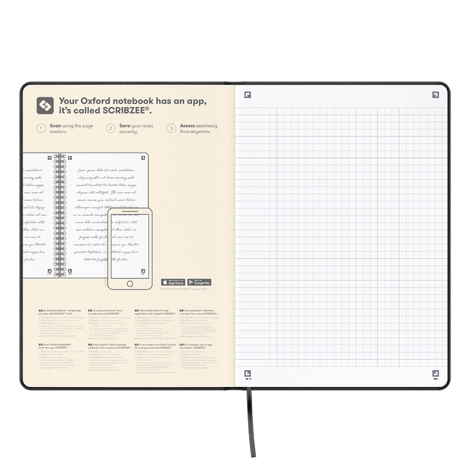 - Tagi w narożnikach stron oraz specjalna aplikacja Scribzee®umożliwiają skanowanie notatek za pomocą urządzeń mobilnych