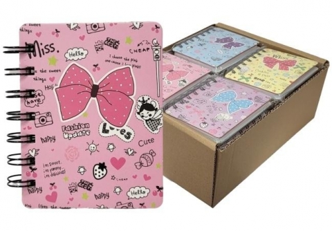 Odkryj nasz zestaw 24 ślicznych notesów A6, idealnych dla każdej miłośniczki stylowych akcesoriów. Te kompaktowe notesy doskonale sprawdzą się do codziennych zapisków, organizacji myśli, prowadzenia pamiętnika, a nawet jako mini-szkicownik. Każdy notes charakteryzuje się wytrzymałą, spiralną oprawą, która zapewnia komfortowe użytkowanie i trwałość. Okładki zdobią urocze, dziewczęce grafiki z dominującym motywem dużej kokardki, wzbogacone o modne hasła i symbole. W opakowaniu zbiorczym znajdziesz notesy w kilku pastelowych kolorach (różowy, fioletowy, żółty, niebieski), co dodaje zestawowi różnorodności i sprawia, że każdy znajdzie coś dla siebie. To doskonały wybór zarówno do użytku własnego, jak i na prezent. Cena podana jest za jedną sztukę notesu.