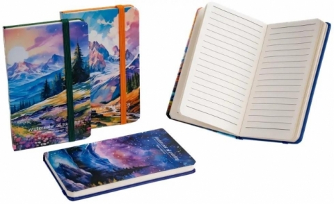 notes z gumką, atrakcyjne motywy, 80 kartek, papier w linie, rozmiar notesu 8,5 x 14 cm, miks motywów