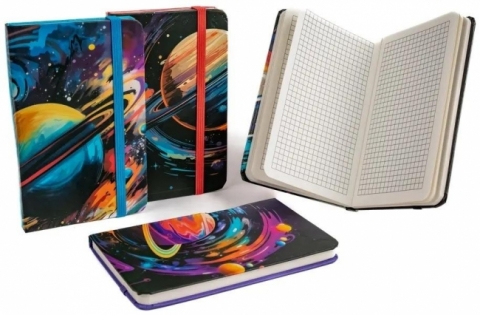 notes z gumką, atrakcyjne motywy, 80 kartek, papier kwadratowy, rozmiar notesu 8,5 x 14 cm, miks motywów