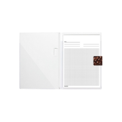 - notes wykonany z folii PVC z pełnym, ozdobnym nadrukiem - - wyposażony w miejsce na długopis - na lewej, wewnętrznej stronie okładki przezroczysta trójkątna kieszeń na dodatkowe notatki - zamykany na wygodny rzep - w zestawie z notesem konferencyjnym w kratkę formatu A5 -