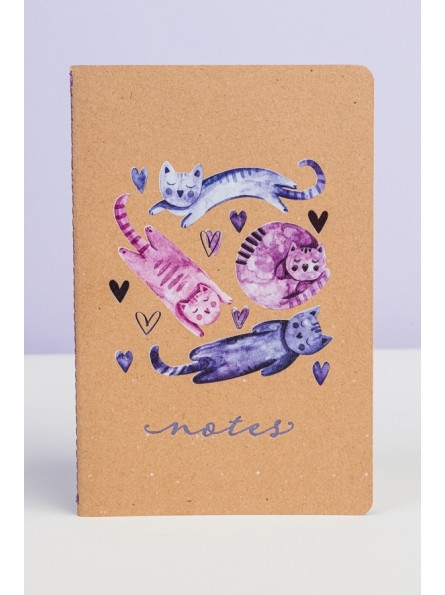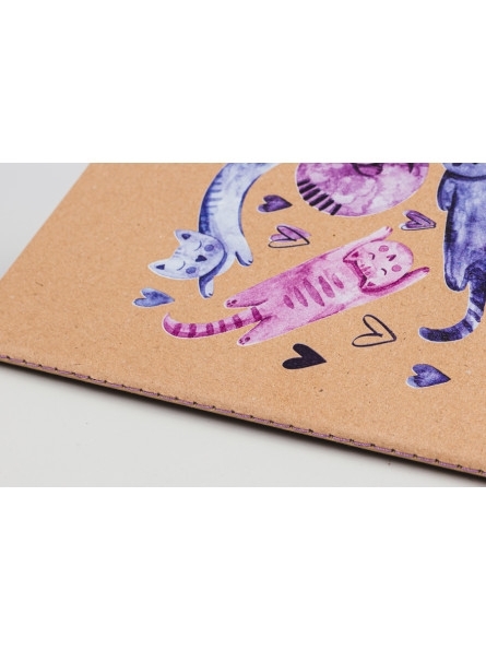 - Okładki notesu z ilustracją kotów i serduszek oraz subtelnie tłoczone elementy grafiki i napisy, tworzą piękne zestawienie z naturalną tekturą. Kolor nici, pierwszej i ostatniej strony notesu uzupełniają stylowy wygląd notesu.