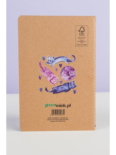 - Podręczny, szyty nićmi notes ekologiczny Koty I z tekturową okładką pochodzącą w całości z odzysku!