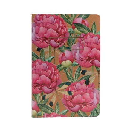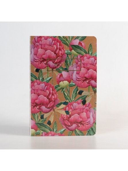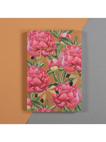 - Okładka notesu z grafiką w intensywnie różowe piwonie oraz tłoczony na złoto napis tworzą piękne zestawienie z naturalną tekturą.