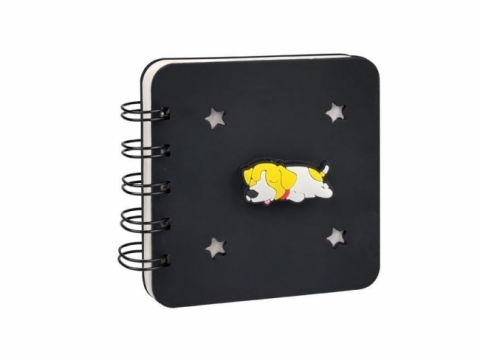 Wewnątrz znajdują się czyste, białe kartki bez nadruku. Spiralna oprawa umożliwia wygodne przewracanie stron i utrzymuje kartki schludnie na swoim miejscu. Przednią stronę uzupełnia ozdobna przypinka, która znajduje się w zestawie i nadaje notesowi zabawnego akcentu.