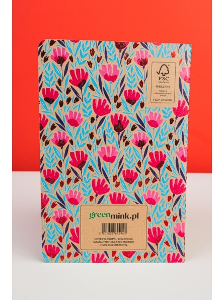 - Podręczny, szyty nićmi notes ekologiczny Ukwiecony III z tekturową okładką pochodzącą w całości z odzysku!