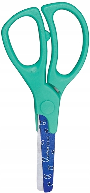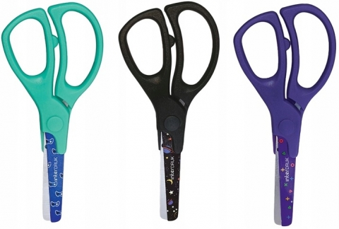 - Zaokrąglone, bezpieczne ostrze ze stali nierdzewnej z kolorowym nadrukiem.