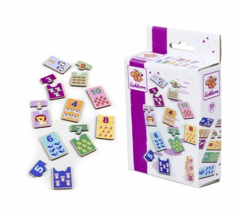 Numery 1-10, wszystkie elementy mają różne kształty, 20 elementów, sklejka lipowa, 2l+